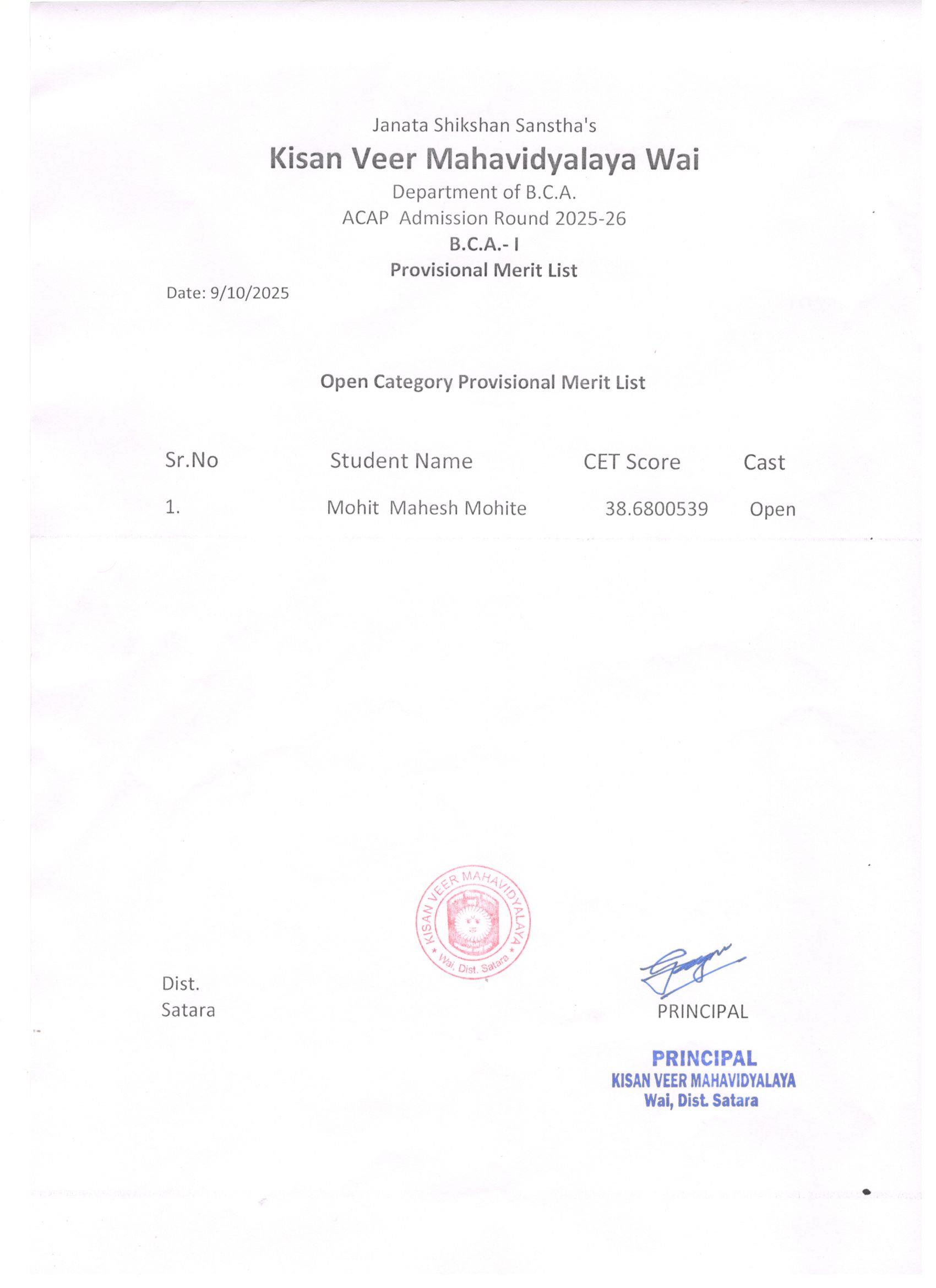 Principal, Kisan Veer Mahavidyalaya, Wai