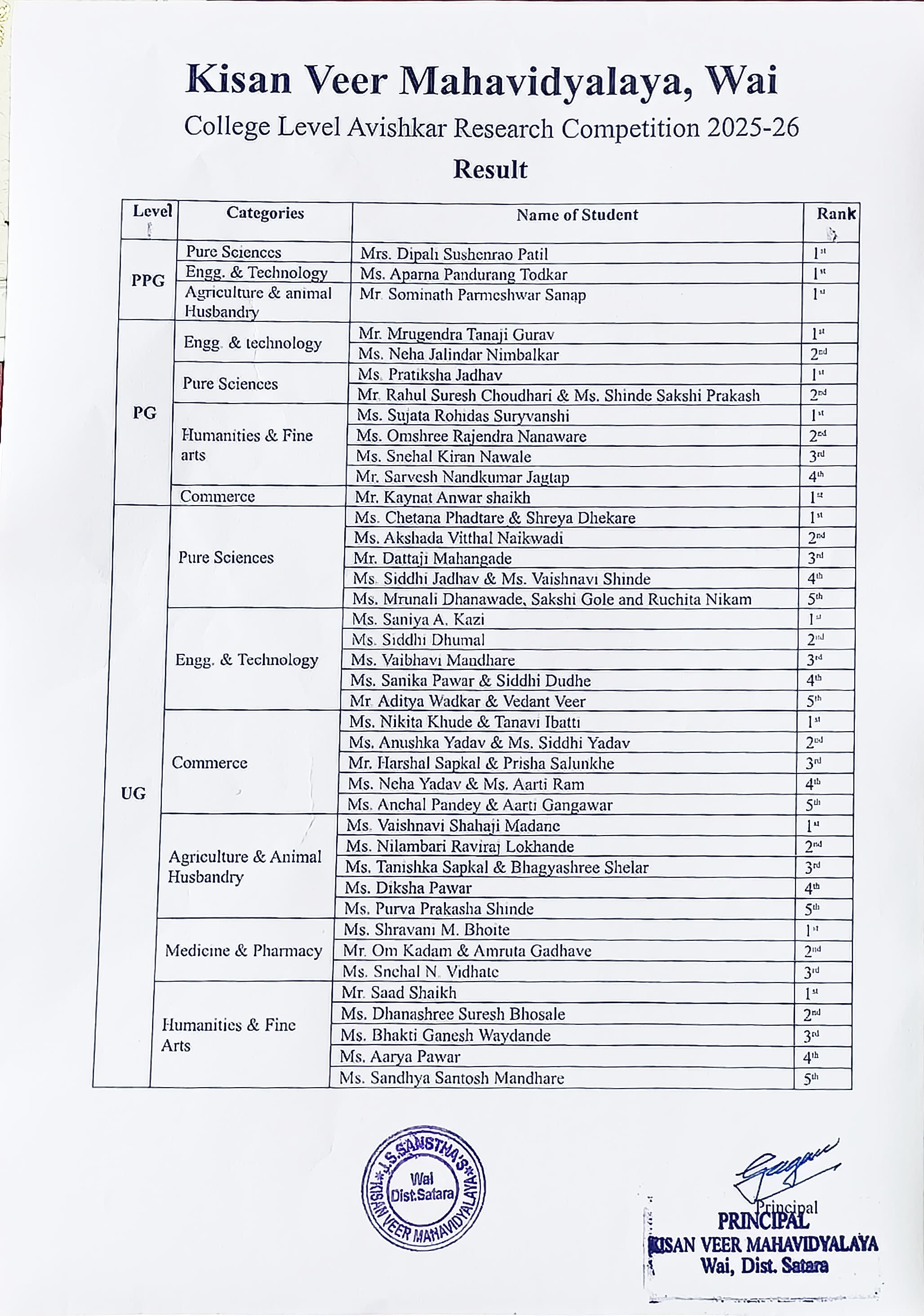 5 2025-26 Shravani Bhoite M BSc. II (Minor) 26 Selected District Level Avishkar Competition 2025-26 District PDF
